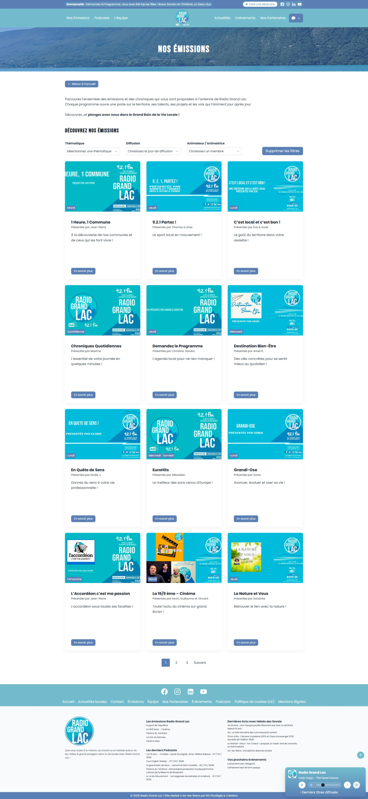 Le site de Radio Grand Lac est aujourd’hui une véritable plateforme digitale complète, alliant diffusion audio, contenu éditorial et automatisation.